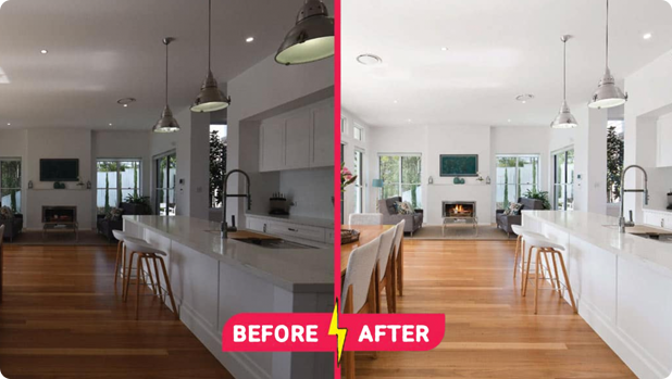 The rendered images are then fine tuned using editing software to enhance colors, details, and lighting. After these adjustments, the images are ready to be used in virtual tours or marketing materials.